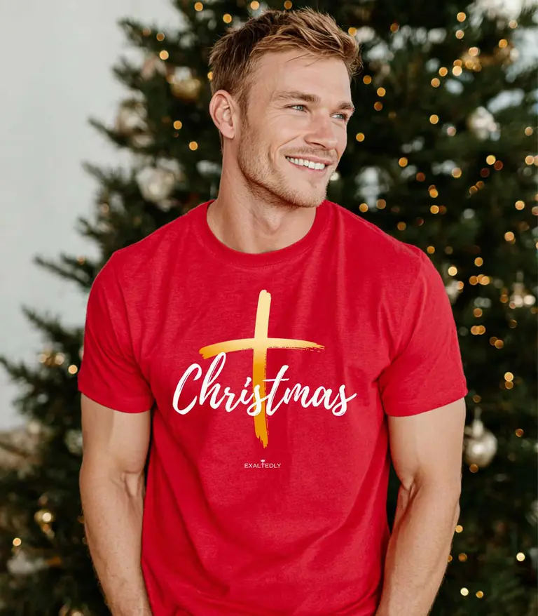 Unveil the heart of the season with the Christmas Cross Unisex Short Sleeve T-Shirt from Exaltedly! Crafted from premium, ultra-soft cotton, this shirt offers a cozy, true-to-size fit designed for adults, making it ideal for wearing to church services, festive family gatherings, or joyful community events. The striking red background showcases a bold golden cross intertwined with a flowing “Christmas” script, creating a powerful symbol of Christ’s birth and the Christian faith that inspires every wearer.